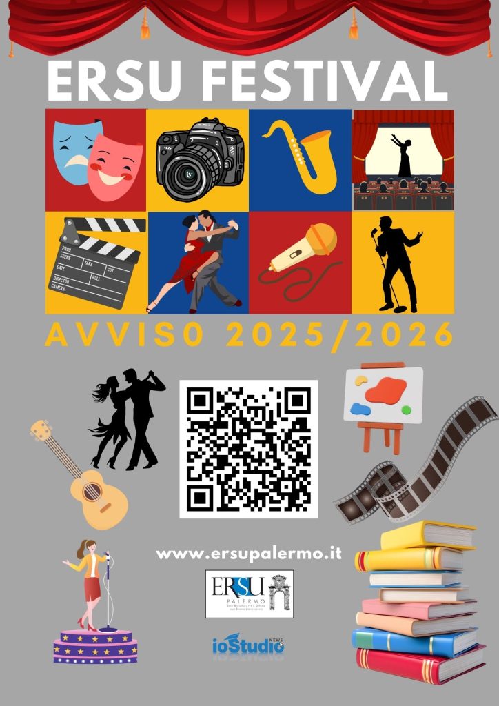 L’ERSU di Palermo annuncia la selezione pubblica di iniziative artistico-culturali da includere nel programma della seconda edizione di ERSU Festival, per l’Anno Accademico 2025/2026: un’iniziativa pensata per promuovere cultura, creatività e integrazione tra comunità universitaria e territorio, con l’obiettivo di offrire contenuti di alto valore artistico e formativo a studenti, studentesse e realtà culturali locali, offrendo spazi e strumenti della propria struttura per facilitare le iniziative proposte. L’Ente in base alla legge istitutiva, infatti, promuove e sostiene attività culturali destinate agli studenti della Sicilia occidentale iscritti presso le università, le accademie di belle arti e i conservatori di musica.